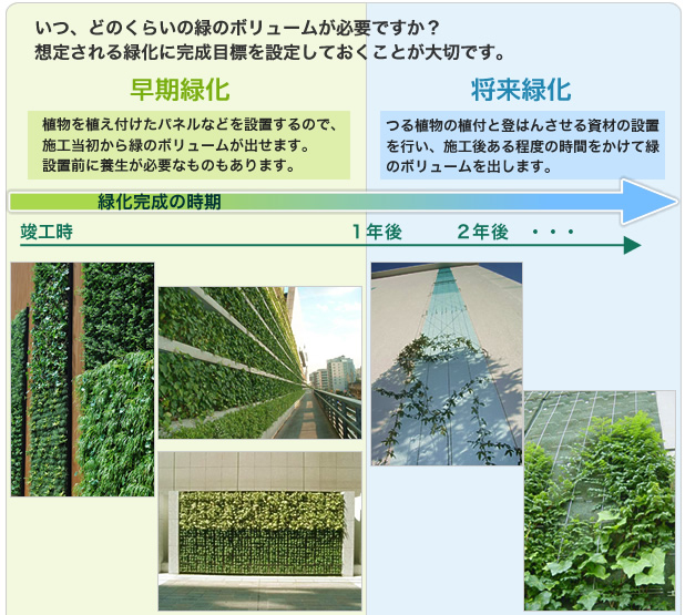 緑化の完成をいつに設定するかで、「早期緑化タイプ」「将来緑化タイプ」のどちらから